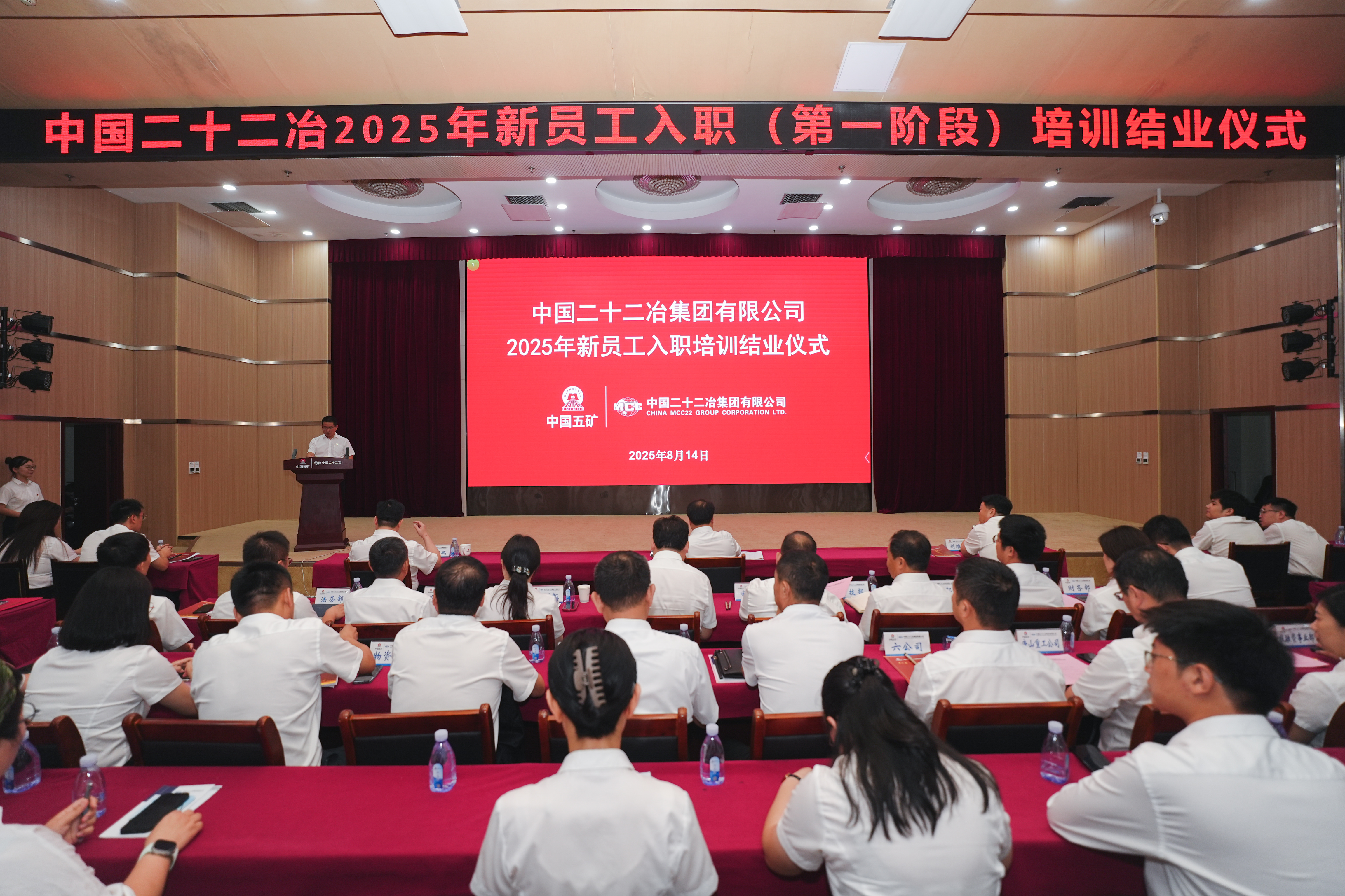 8月14日,中國(guó)二十二冶召開(kāi)2025年新員工入職培訓(xùn)(第一階段)結(jié)業(yè)儀式。中國(guó)二十二冶黨委書(shū)記、董事長(zhǎng)袁斯浪,黨委副書(shū)記、職工董事張育鵬,工會(huì)主席、專(zhuān)項(xiàng)工作督導(dǎo)辦公室主任劉維棟出席。黨委組織部(人力資源部)副部長(zhǎng)(主持工作)郭穎川主持結(jié)業(yè)儀式。
