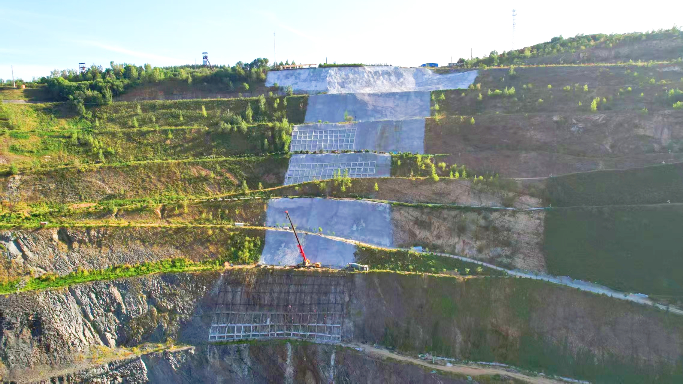 ?、騾^(qū)混凝土噴坡是實(shí)現(xiàn)邊坡生態(tài)修復(fù)與防護(hù)的關(guān)鍵工序。施工過程中,團(tuán)隊(duì)采用專業(yè)液壓噴坡設(shè)備,分層次均勻噴射混凝土,噴射厚度嚴(yán)格控制在設(shè)計(jì)標(biāo)準(zhǔn)范圍內(nèi),確保混凝土與邊坡巖體緊密結(jié)合。Ⅳ區(qū)格構(gòu)梁作為邊坡結(jié)構(gòu)加固的重要組成部分,其施工質(zhì)量直接關(guān)系到整個(gè)邊坡的穩(wěn)定性。在Ⅳ區(qū)格構(gòu)梁節(jié)點(diǎn)施工過程中,原材料方面,對(duì)進(jìn)場的鋼筋、混凝土等材料進(jìn)行嚴(yán)格抽檢,確保所有材料符合國家規(guī)范及項(xiàng)目設(shè)計(jì)標(biāo)準(zhǔn),堅(jiān)決杜絕不合格材料入場。鋼筋加工環(huán)節(jié),項(xiàng)目管理人員根據(jù)節(jié)點(diǎn)設(shè)計(jì)圖紙精準(zhǔn)下料,連接強(qiáng)度等指標(biāo)均經(jīng)過現(xiàn)場檢測,確保滿足結(jié)構(gòu)受力要求。